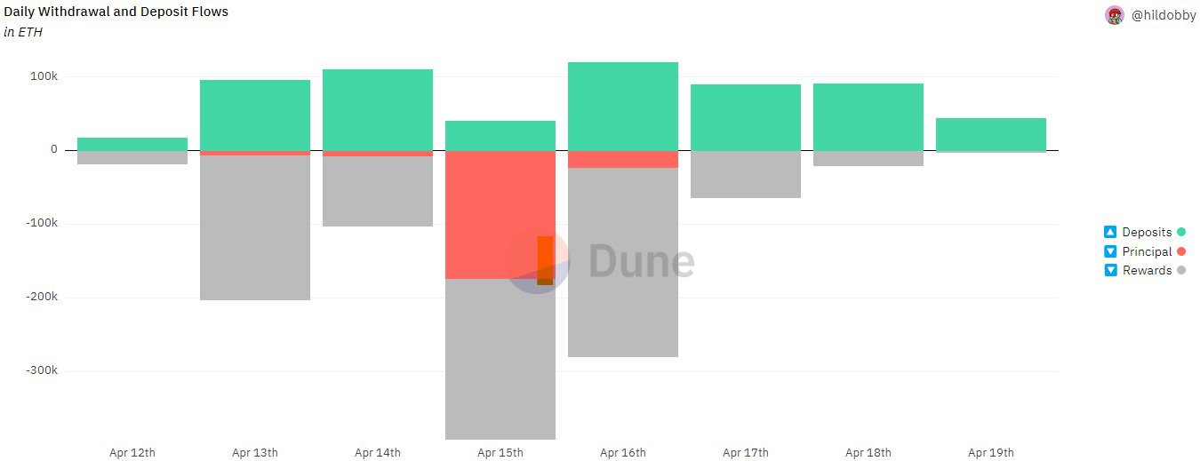 According to Parsec, the total stake of validators waiting in the queue to withdraw their principal is ~640k ETH. That is 3X all the principal withdrawals that have occurred so far.